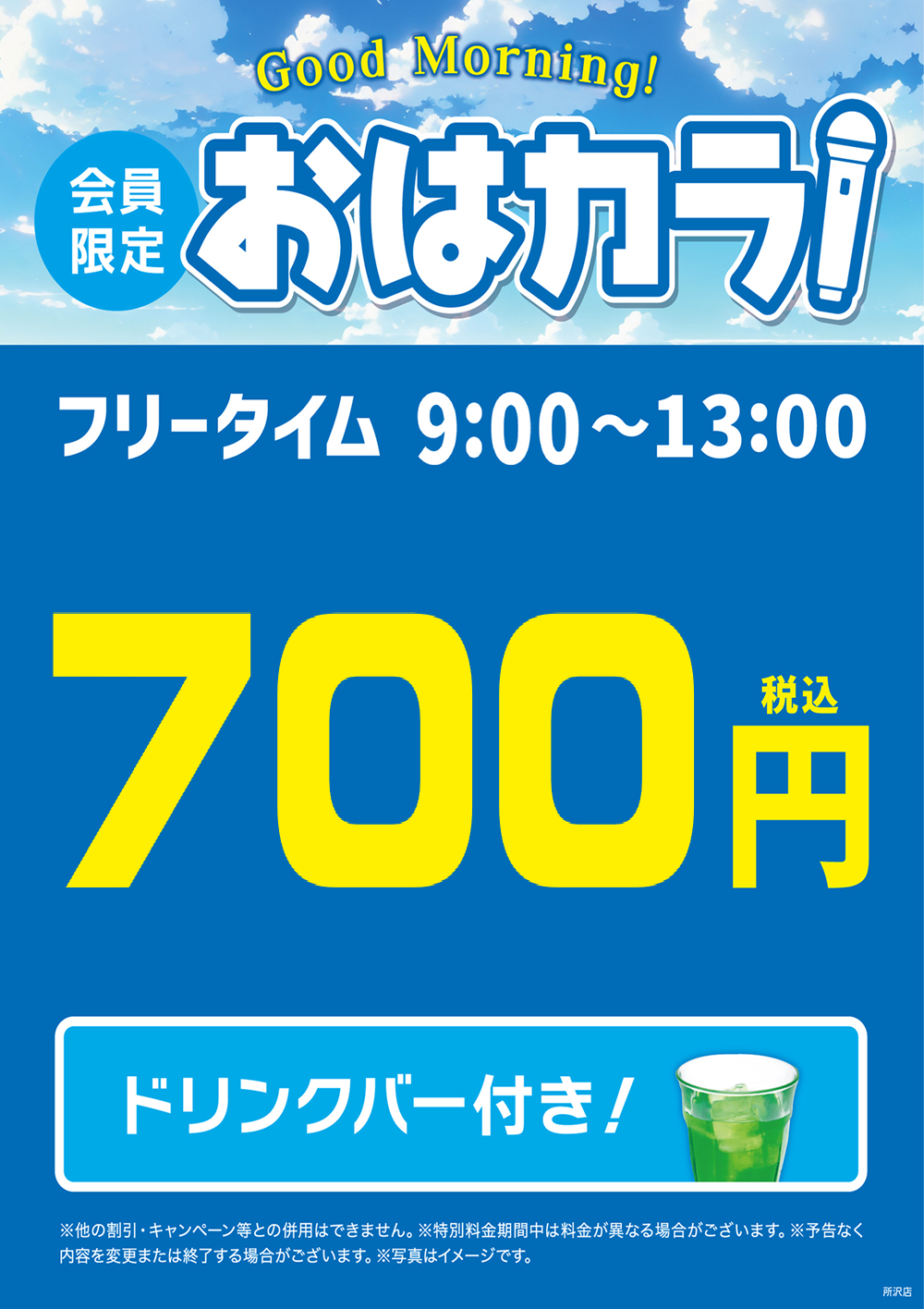 | 会員限定 おはカラフリータイム OPEN~13:00  |