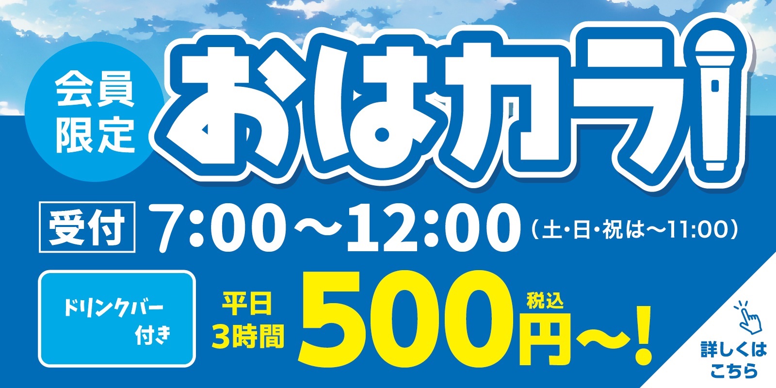 | おはカラ フリータイム 8:00~14:00 ※12:00まで受付 |