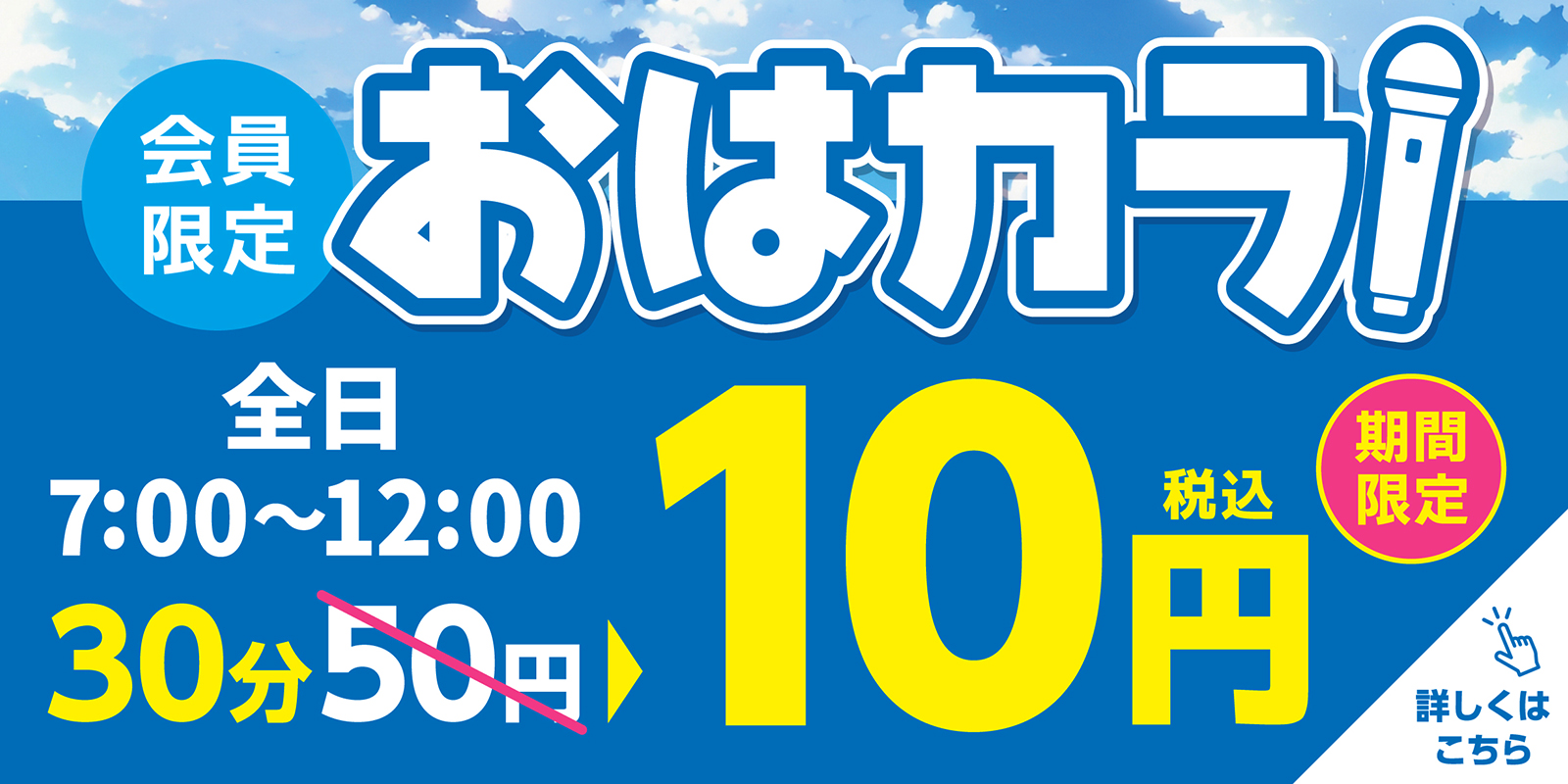 おはカラ 全日 07:00~12:00 30分料金 ※他の割引及びキャンペーン等との併用不可 |